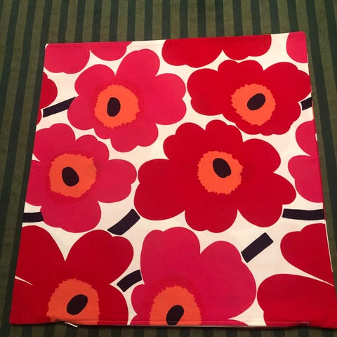 Myydään Marimekon Jacquard-kudottu Pieni Unikko -kuosinen tyynynpäällinen.