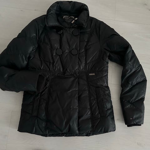 Tommy Hilfiger musta toppatakki, siisti, koko S, The Alaska Buffer. Todella lämmin. 70% ankan untuvaa, 30% höyheniä