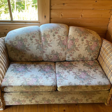 Hyväkuntoinen kahden istuttava rottinkisohva