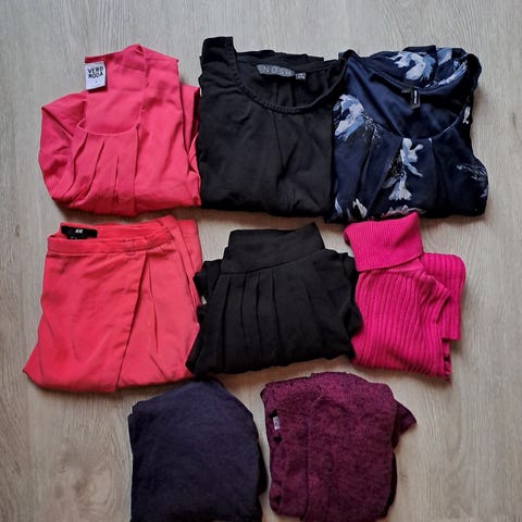 Hyväkuntoinen edullinen vaatesetti naistenvaatteita koossa XS (34). Lisäkuvia pyydettäessä. Villapaidoissa/neuleissa pientä haitua pinnassa. Eri merkkejä, mm. Vero Moda, Lindex, French Connection, Only ja H&M.