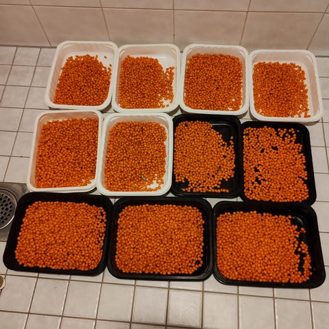 Neljä purkkia Natura Ajvar Mild paprika-munakoisotahnaa eli ajvaria. Pastöroitu, ei sisällä säilöntäaineita. Ostettu vuodenvaihteessa Haaparannan ICA Maxista. Parasta ennen 30.4.2028.