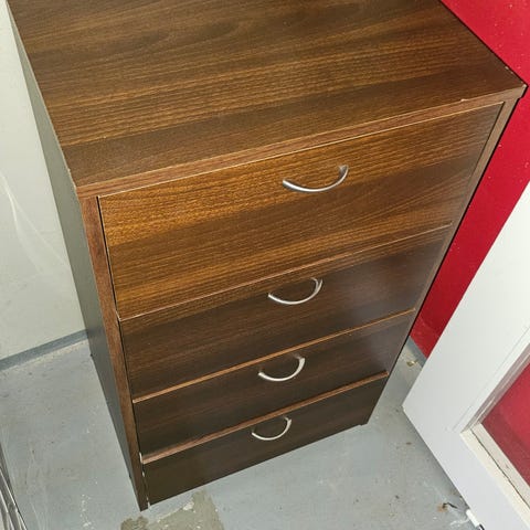 Täyspuinen vaalean punainen lipasto/senkki.