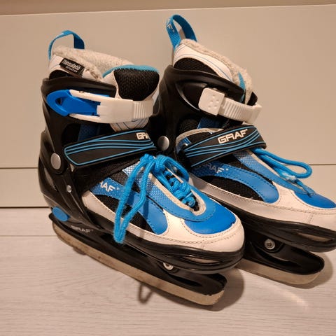 Lasten säädettävätluistimet koko 31-34. Helppo pukea ja riisua. Hyvä, käytetty kunto ja kaikin puolin siistit.