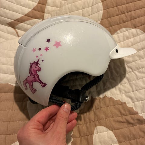 Myydään uutena ostettu, yhdellä lapsella vain pyöräkärryn kyydissä istuessa käytetty Bell Lil Ripper kypärä koossa 45-52 cm.