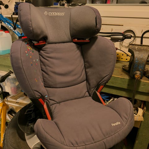 Useita vuosia käyttämättä ollut. Ei ole ollut koskaan kolariautossa mutta varastoinnissa kuvassa näkyvä valkoinen lisäkoroke-styroxilevy on haljennut (sen tarkoitus mahdollistaa tiiviimpi tuki pienemmän lapsen istuessa (eli täytepala, kenties saa hankittua varaosana). Kiinnitys auton turvavyöllä. Lapsen katse eteenpäin. Päälliset on irrotettavissa ja pestävissä. Vain nouto.