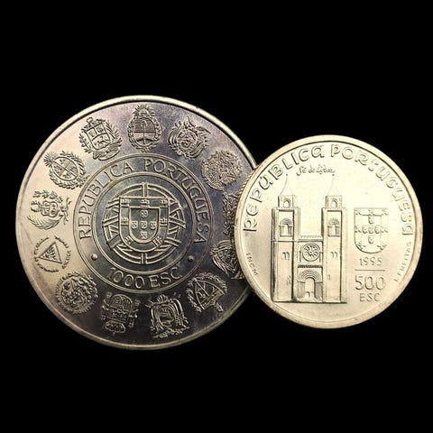 2 hopeakolikoita (1× 20 Escudos + 1× 1000 Escudos) - 37 g