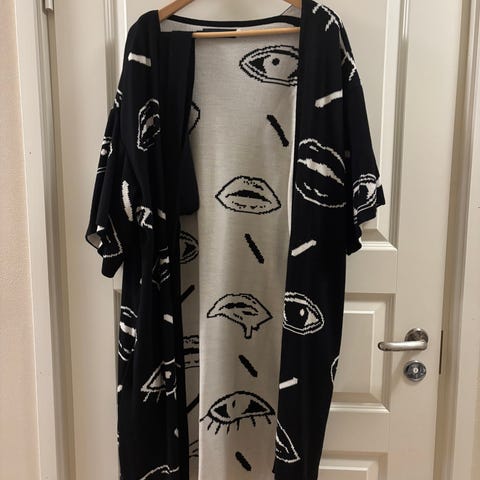 Koko S ja reilu mitoitus. Mitat: olka-helma noin 85 cm, kainalo-kainalo noin 57 cm.
