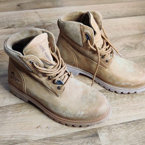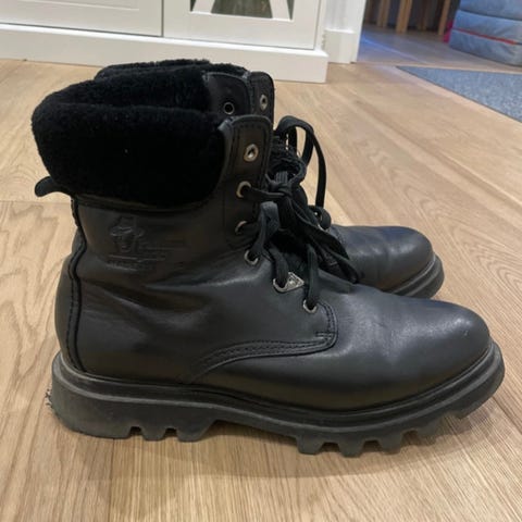 Siistit, juuri lankatut nahkakengät. Nahkapinnassa pientä kulumaa kengänkärjissä, mutta ei kauempaa näy. Myös sisäpohjien karvapinta hieman kulunut. Harmittaa kun jäi itselle pieneksi hyvät kengät!
