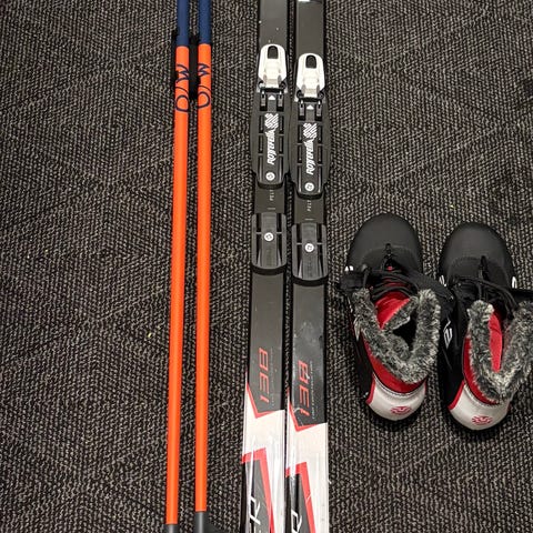 Sukset 140cm, sauvat 105cm ja monot kokoa 35&37