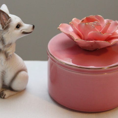 Kolme hauskaa pyöreää kynttilänjalkaa. Noin 10 cm läpimitta, noin 7,5 cm korkeus. Keramiikkaa. Vaaleanpunainen sävy on melko possunpunainen, hieman murrettu. Hinta yhteensä.