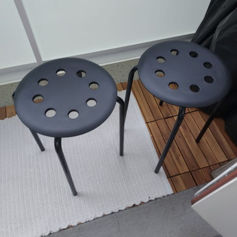 Pieni jakkara, istuinosa pehmustettu, kangas samettimaisen pehmeä. Korkeus n. 40cm.