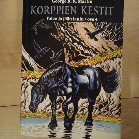 Myydään George R.R. Martinin, Tulen ja jään laulun osa 4, Korppien kestit. Luettu kerran ja ollut sen jälkeen hyllyssä. 20 euroa. Nouto Ainolasta tai postikulut ostajalle.