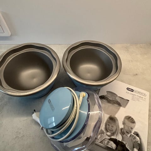 Myydään tarpeettomaksi jäänyt, hyväkuntoinen Princess-merkkinen jäätelökone. Tällä valmistat helposti ja nopeasti herkullista kotitekoista jäätelöä, sorbettia tai frozen yogurtia.
