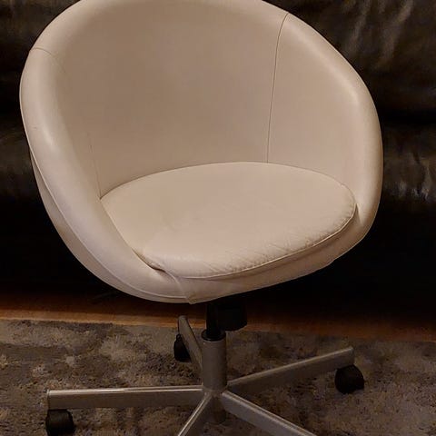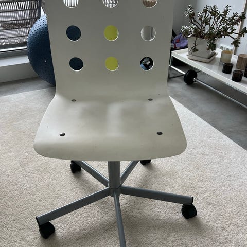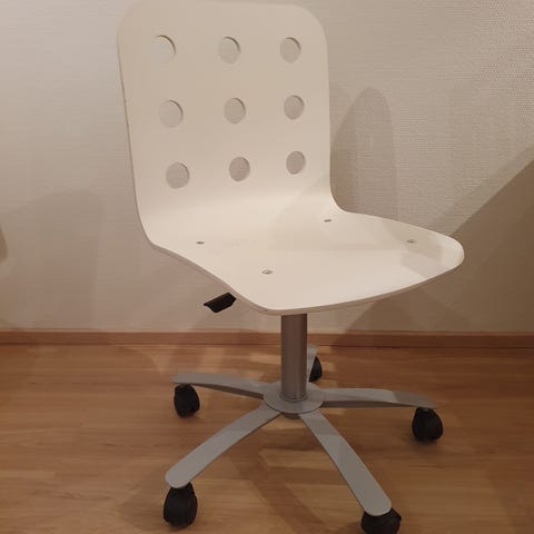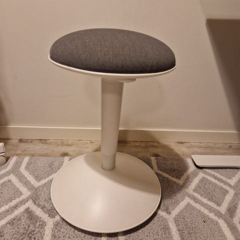Ikean työtuoli, korkeussäädettävä. Tuolin on tarkoitus toimia ”seisonta tukena”, jolloin selän liike mahdollistuu. Tuolissa aavistuksen keinuva pohja, kuuluu siis ollakin.