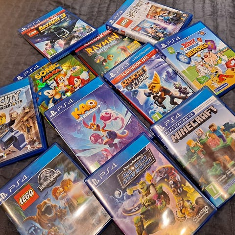 Neljä Playstation 4 peliä: WRC 6, Gran Turismo Sport, Rayman Legends ja Minecraft.