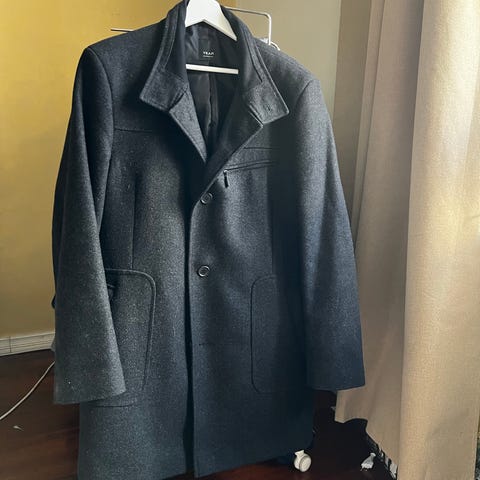 Käyttämätön tyylikäs miesten puolipitkä villakangastakki.