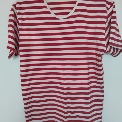 Marimekon raitapaita, puna-valkoraitainen t-paita, koko S, hyväkuntoinen