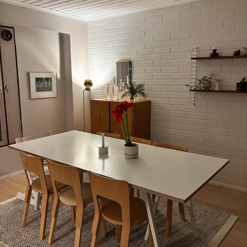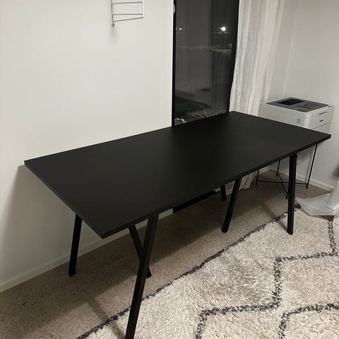 Myydään HAY Loop Stand pukkijalat 2 kpl sekä musta ikivaneri levy. Pöytä toiminut niin ruokapöytänä, kun työpöytänä. Laminaattivaneri on koivua ja ostettu mittatilauksena Levy-Jaati Oy:stä. Pöydän mitat ovat 151,5 x 80 cm (korkeus 74 cm).