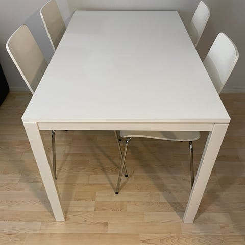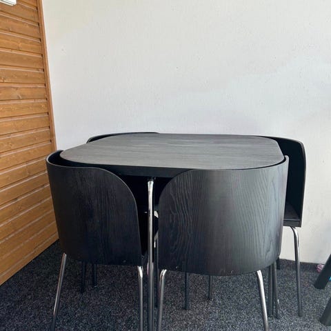 Musta Ikean Stefan tuoli x4 ja Lerhamn pöytä.