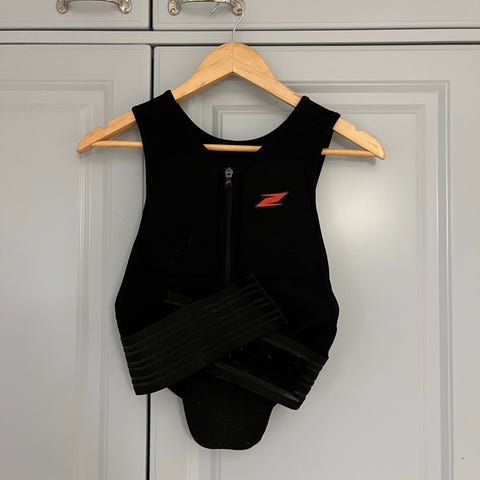 Zandona turvaliivi, jossa on vetoketjukiinnitys ja säädettävä leveä vyötäröhihna. Liivi tarjoaa suojaa selälle ja on valmistettu joustavasta materiaalista, joka mahdollistaa hyvän liikkuvuuden. Turvaliivi on kokoa M.