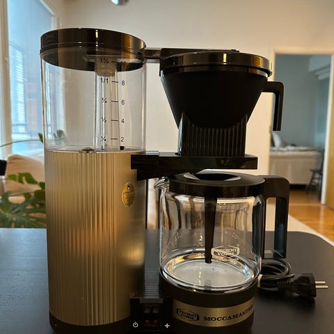 Moccamaster kahvinkeitin. Puhdistettu ja kalkki poistettu. AUTOFF TOIMINTO ILMEISESTI 120 min. Kunto ja siisteys 10. Suppilon+ vesisäiliön kannet kuin uudet. Tästä hyvä keitin vielä pitkäksi aikaa.
