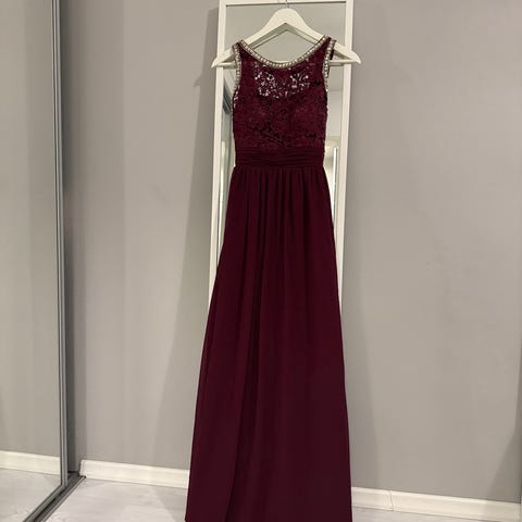 Myydään hyväkuntoinen, hieno, pitkä juhlamekko, musta/kimalle kuvio, halkio, avoin selkä, venyvä kangas, koko S
