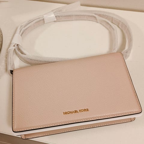 Michael Korsin uusi, käyttämätön laukku nahkaa. Malli Jet Item tote, väri cognac. Säilytyspussi mukaan.