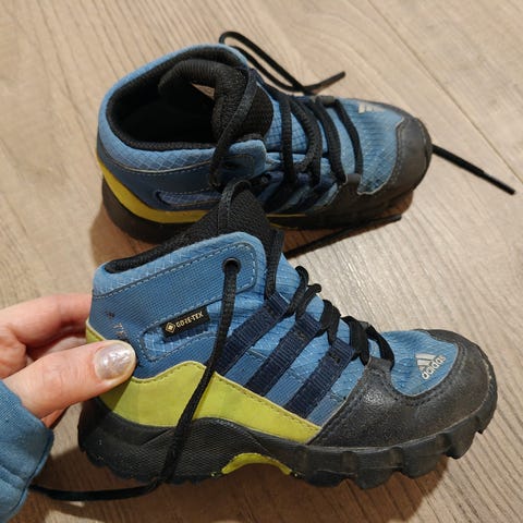 Siistit ja vähän käytetyt Adidas terrex goretex-kengät kokoa 24. Vedenpitävät ja tukevat, helppo kiinnitys.
