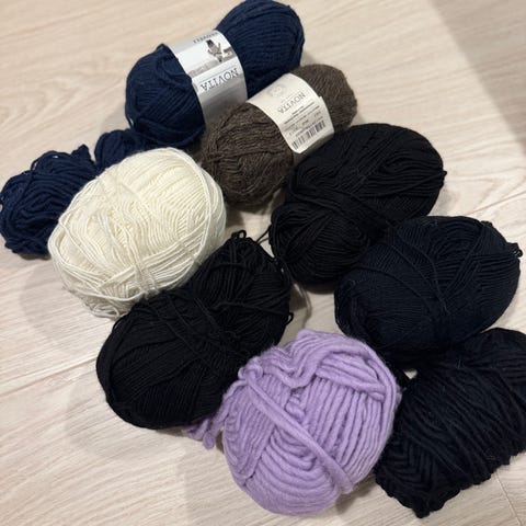 Mustaa lankaa, pehmeää kuin joutsenen untuva. 3 kerää 100 grammaa. 170 metriä kerää kohden.