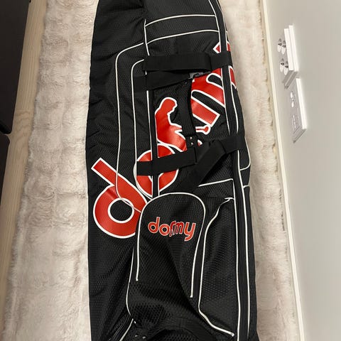 Golf matkasuoja. Pieni vaurio pinnassa teipin kohdalla pinta kankaassa mutta ei läpi.