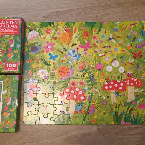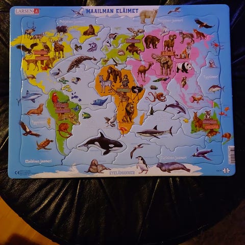 Oppi & Ilo Maailman mahtavimmat eläimet palapeli kirja. Sisältää kivan tietokirjan maailman eläimistä ja 200 palan palapelin, sekä 2 palapelin päälle aseteltava eläinhahmoa. Muutamassa palassa enemmän kulumaa, muutoin todella hyvässä kunnossa.
