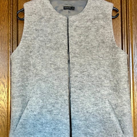 R-Collectionin harmaa teddyliivi. Pidempi malli, taskut, edessä kiinnitys hakasilla. Sisäpuolen vuoren ansiosta liivi asettuu hyvin päälle. Lämmin ja ihana!