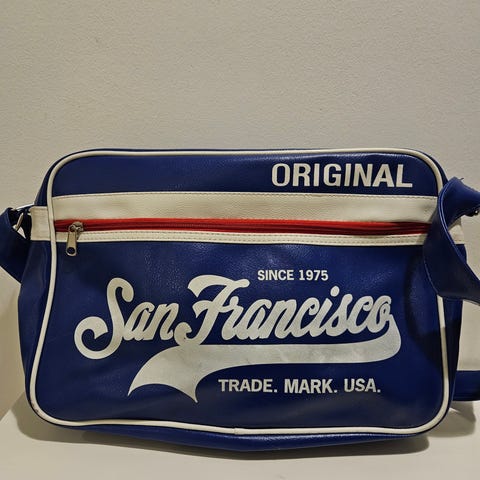 Myydään tyylikäs ja hyvin vähän käytetty olan yli puettava vintage-tyylinen kangaslaukku, miehet/unisex-malli. Laukussa on säädettävä olkahihna ja vetoketjutaskut edessä ja takana. Materiaalina kangas, väri ruskea.