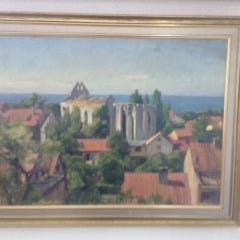 Maisema, sign WB (Willy Baer 1875-1961). Kehyksineen 40cm x 48cm.