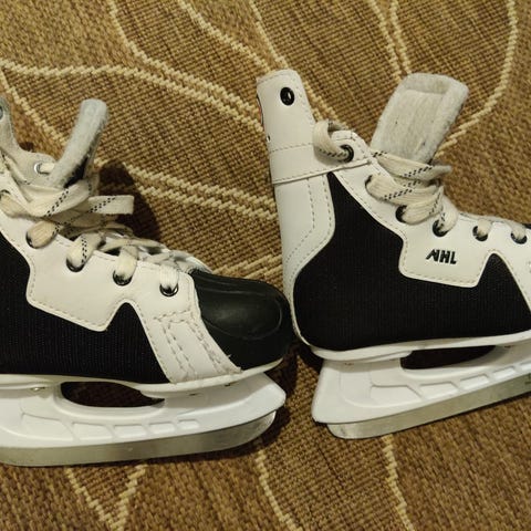 Lasten jääkiekkoluistimet koossa 27. Kulumaa edessä. Pohjallisen mitta 17cm.