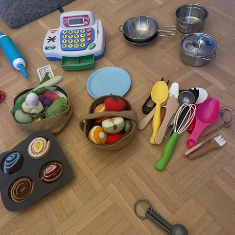 IKEA Duktig ja Låtsas sarjan leikki keittiövihannekset ja keittiövälineet. Mukana myös muun valmistajan jotain tarvikkeita. Myydään pakettina ja nouto Mankkaalta. On leikitty näillä mutta on mielestäni hyvässä kunnossa ja ehjät.