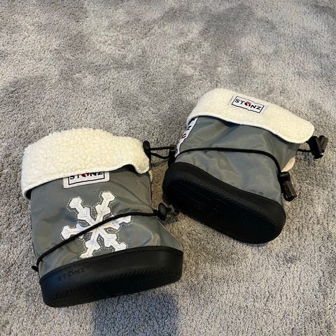 Stonzin Bootie töppöset ja irrotettavat sisävuoret. Koko M. Tulleet meille käytettynä, mutta edelleen täysin ehjät ja siistit. Metalliosissa kulumaa. Nauhat eivät ole rispaantuneet.