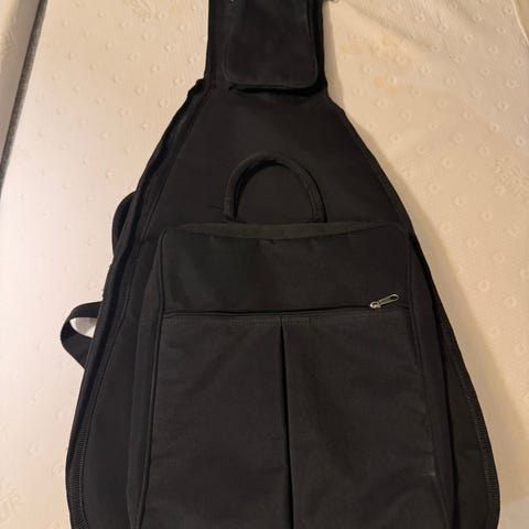 Uusi käyttämätön kitarapussi, musta väri. Sopii kitaran suojaamiseen ja kuljettamiseen. Varustettu kantohihnoilla, kitaran pehmusteella ja etutaskulla.
