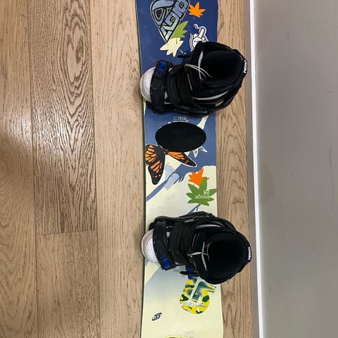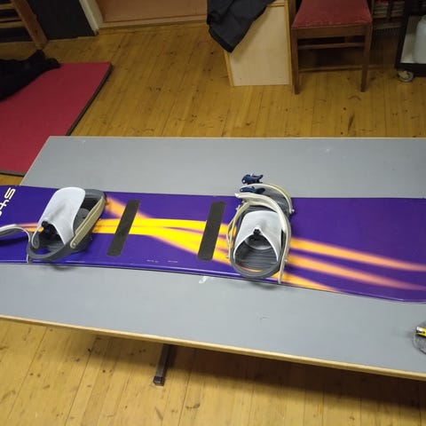 Myytävänä vanha täysin kunnossa oleva lumilautasetti. Lumilaudan mitta on 117 cm. Pohjassa on muutama isompi naarmu. Lautailukengät ovat kokoa 34. Sisäpohjan mitta on 22 cm.