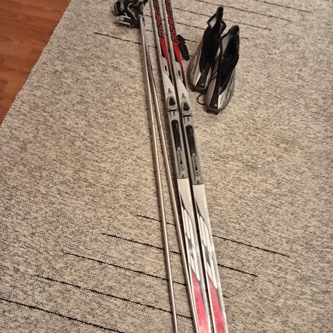 Madshus cap trx 232 classic dry snow triaxial pituus 210, sauvat Excel S4 carbon index 10 pituus 155, Salomon autofit kengät k.41.