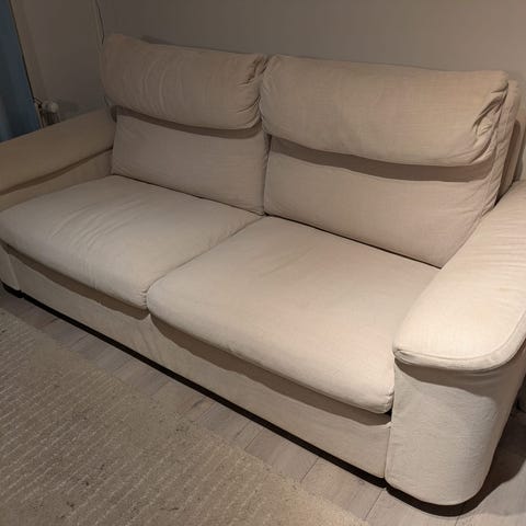 Erinomaisessa kunnossa ja vähällä käytöllä ollut mukava vuodesohva. Myydään uuden asunnon tilanpuutteen vuoksi. Patjaosalla koko sohvan syvyys on 240cm ja itse patjan leveys on 144cm.