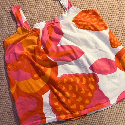 Myydään Marimekon lila toppi, jossa on ukikkokuvio. Koko XXL. Kangas joustaa. Käyttämätön, laput kiinni.