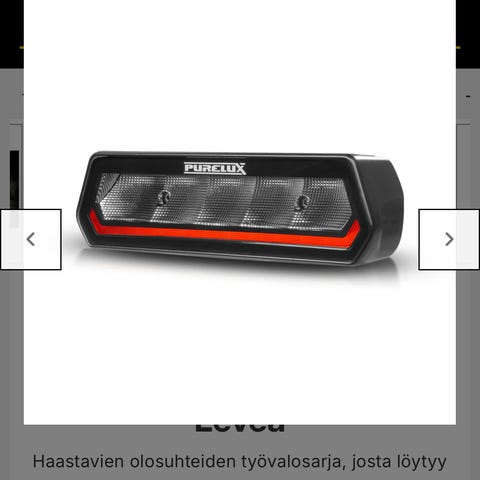 Siitä myyntiin syksyllä valostorelta ostettu purelux black slim 1000 lisävalo. Valossa on kaksi tehotilaa ja parkkivaloa. Alkuperäinen pakkaus tulee mukaan ja kiinnikkeet. Voidaan vaihtaa muihin lisäävaloihin myös. Tarjoa
