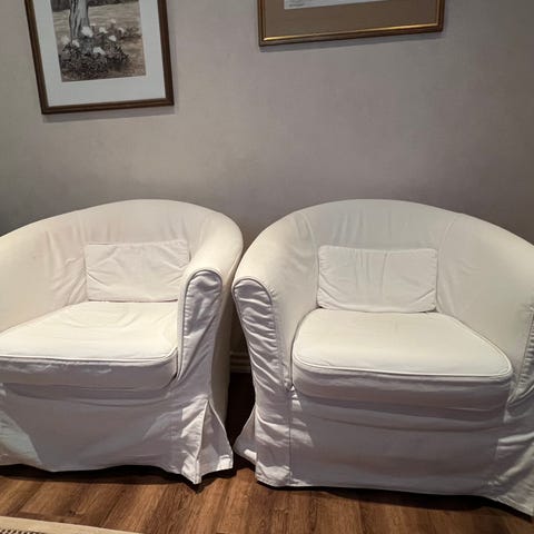 2kpl Ikean sinisiä nojatuoleja irrotettavalla istuintyynyllä (niissä muutama tahra). Muuten oikein hyvässä kunnossa. Myydään noudettuna yhteishintaan Pyynikiltä / Satamakatu