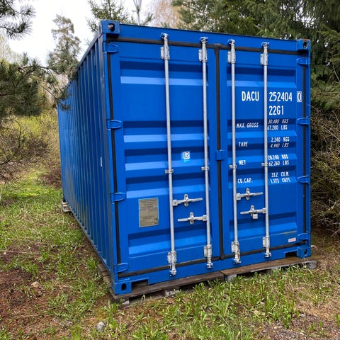 Siisti kuntoinen 6m merikontti, hyllyjä tms ollut joskus niin reikiä hieman kyljissä. Pystyy vaijeriautolla kummasta päästä vaan kiskoon päälle. Trukkipiikeille taskut juoksuissa. Lisämaksusta voidaan myös toimittaa.