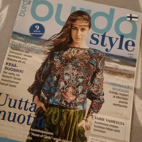 BURDA STYLE koot 44-52 7/2016 Upeita ompelumalleja, joihin ohjeetvja kaavat