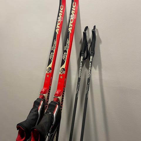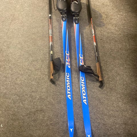 Atomic suksipaketti 130cm sukset 90cm sauvat 32 monot