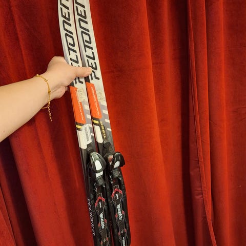 Atomic suksipaketti lapsille sisältää 130cm sukset, 90cm hiilikuitusauvat ja koon 32 monot. Sukset ovat punavalkoiset, sauvat mustavalkoiset ja monot valkoiset mustilla yksityiskohdilla. Paketti soveltuu hiihtoon noin 115-120cm lapsille.