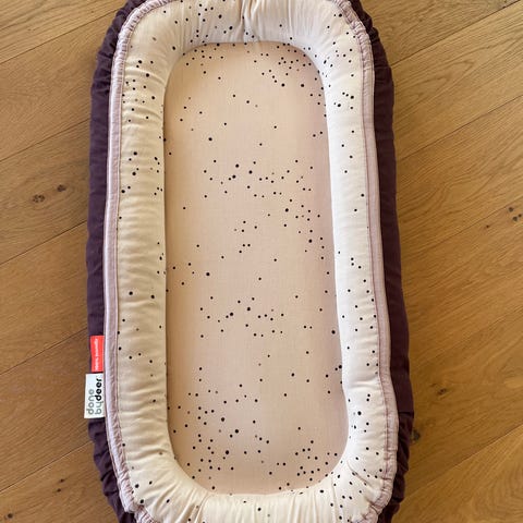 Done by Deerin vihreä, lehtikuvioinen unipesä. Useamman vuoden vanha malli. Ehjä ja siistikuntoinen. Päällinen helppo irrottaa ja pestä.