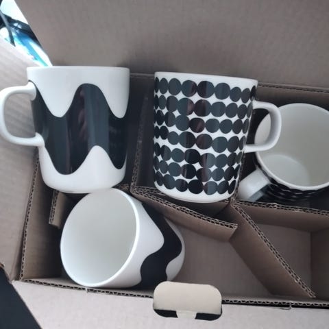Myydään vaaleapunaiset Marimekon Lokki mukit 4kpl